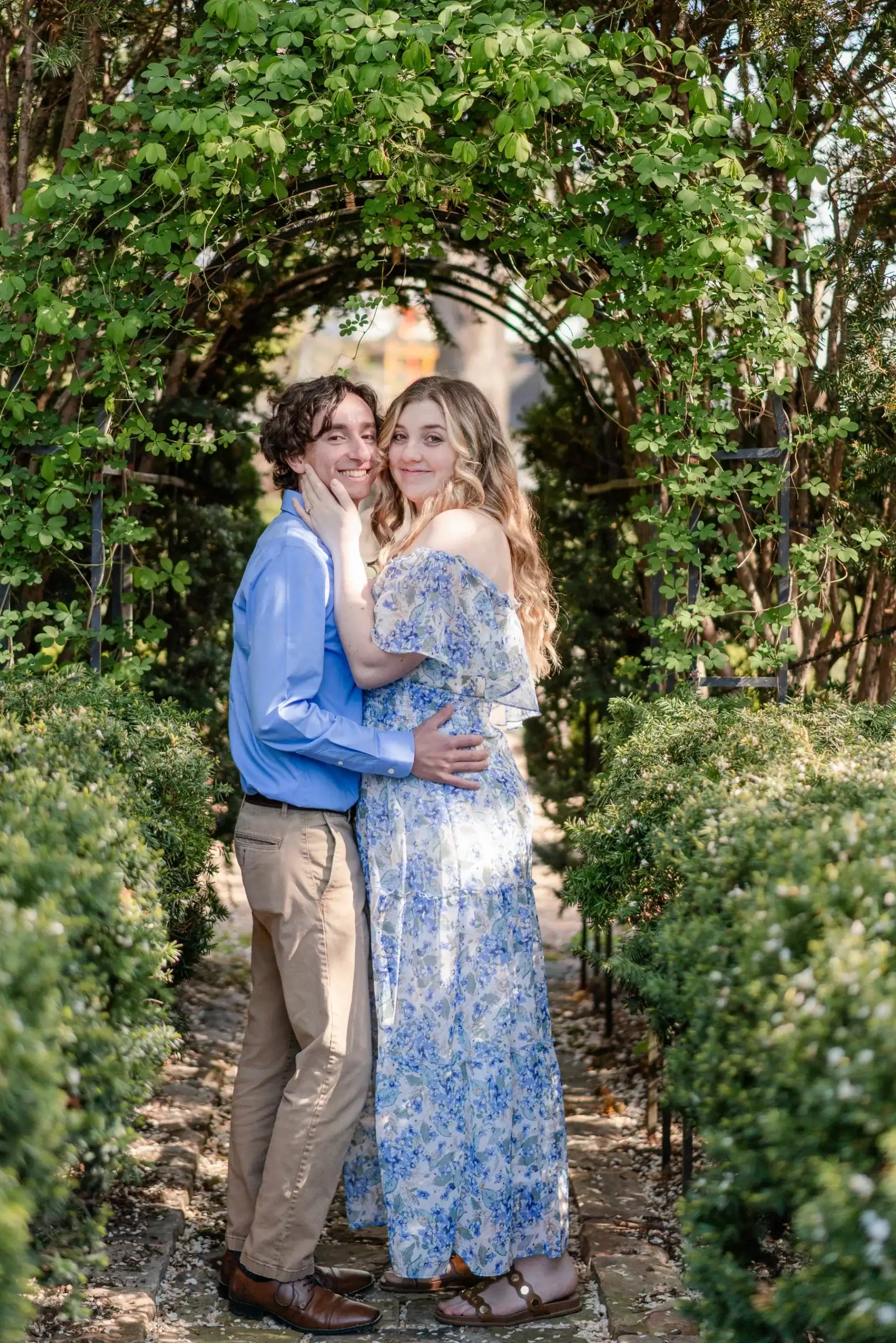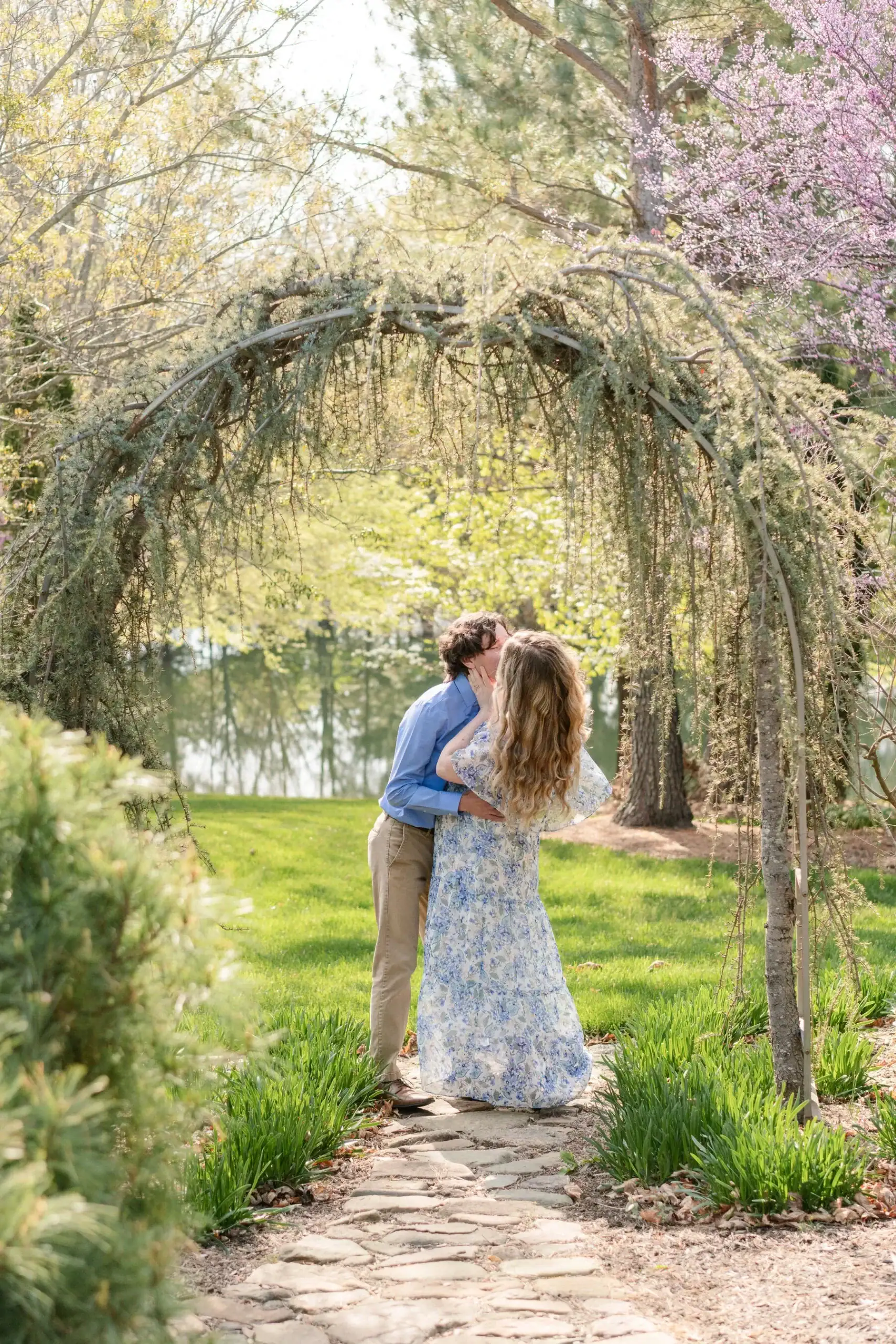 Nestled just outside Charlottesville in Free Union, Waterperry Farm Gardens is a true hidden gem for romantic sessions. Spanning acres of immaculately designed landscapes, this estate offers an endless variety of backdrops. From the reflecting pool and tranquil ponds to the ironwork arches and sweeping garden paths, there’s unlimited opportunity for portraits here! Rows of seasonal blooms fill the property with color and texture, while elegant greenhouses add an architectural charm that feels both timeless and refined. Every corner seems to tell its own story, and the mix of curated design with natural beauty makes it a dream location for engagement photography.