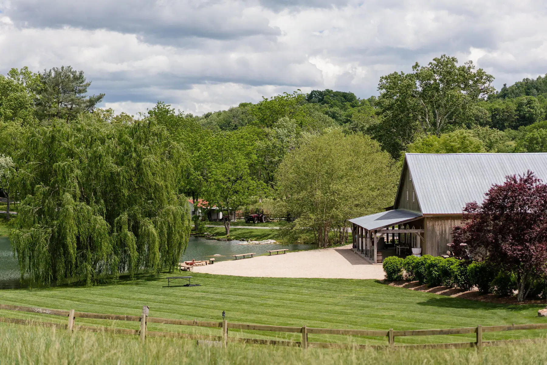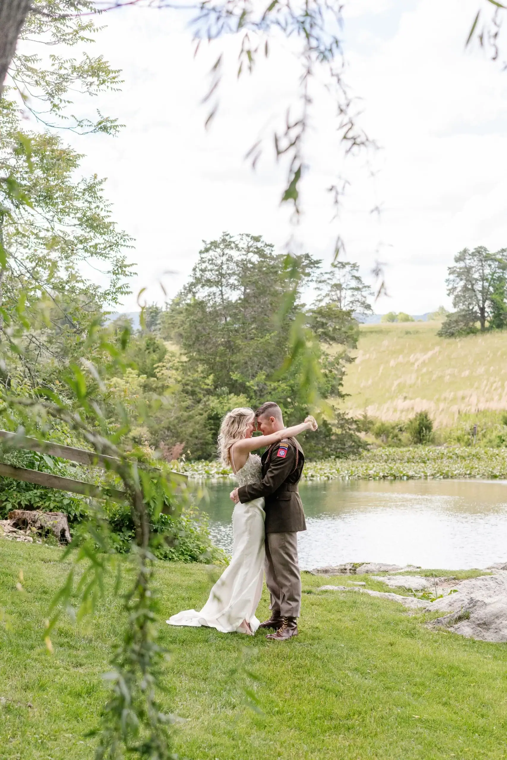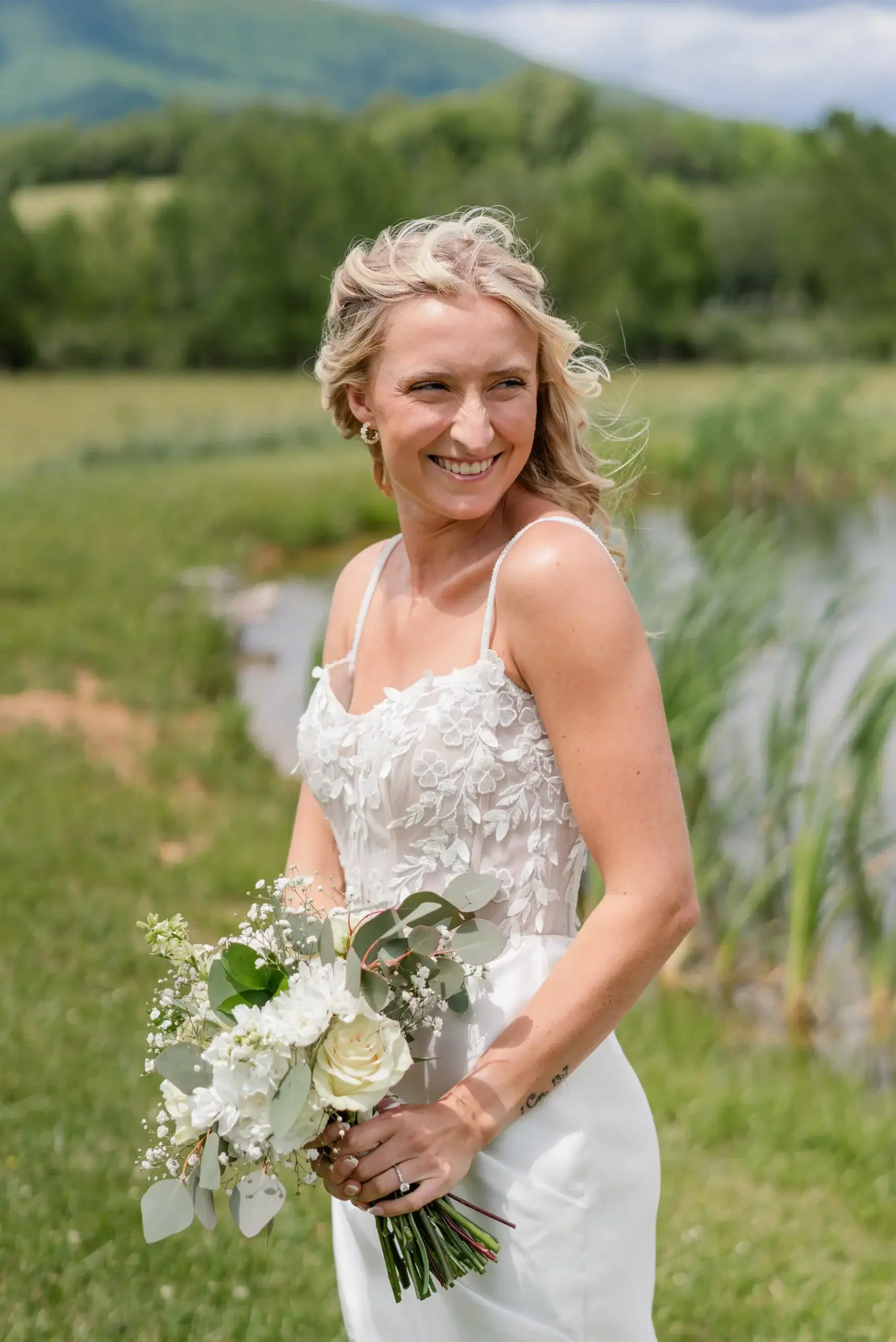 Emma and Chase celebrated their long-awaited wedding day surrounded by family, rolling hills, and the serene beauty of Big Spring Farm in Lexington, Virginia. Even though the couple had already been married for a year, the emotions felt brand new; especially when the groom, known for being quiet and composed, was overcome with tears as he saw Emma walking down the aisle! Their ceremony by the water was framed by lush ferns, classic white florals, and the willow trees that make this venue so timeless.