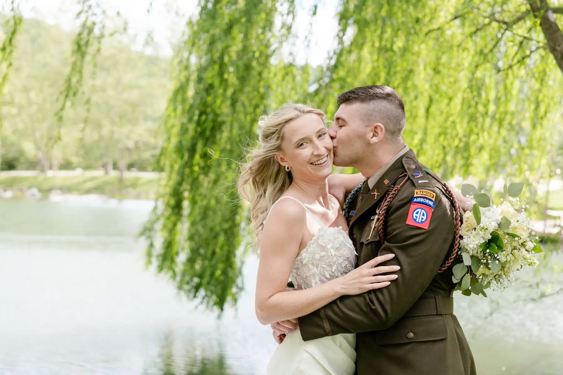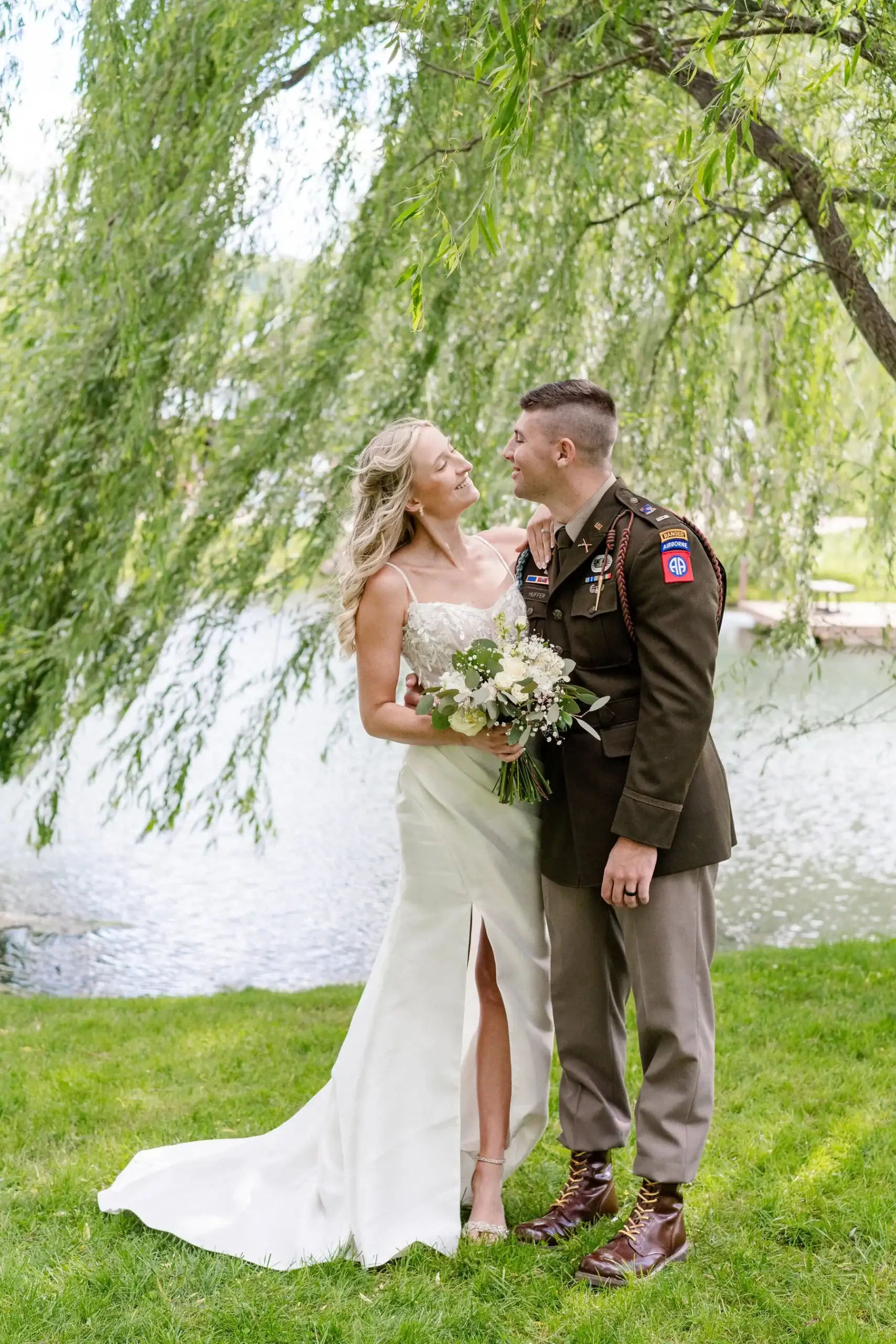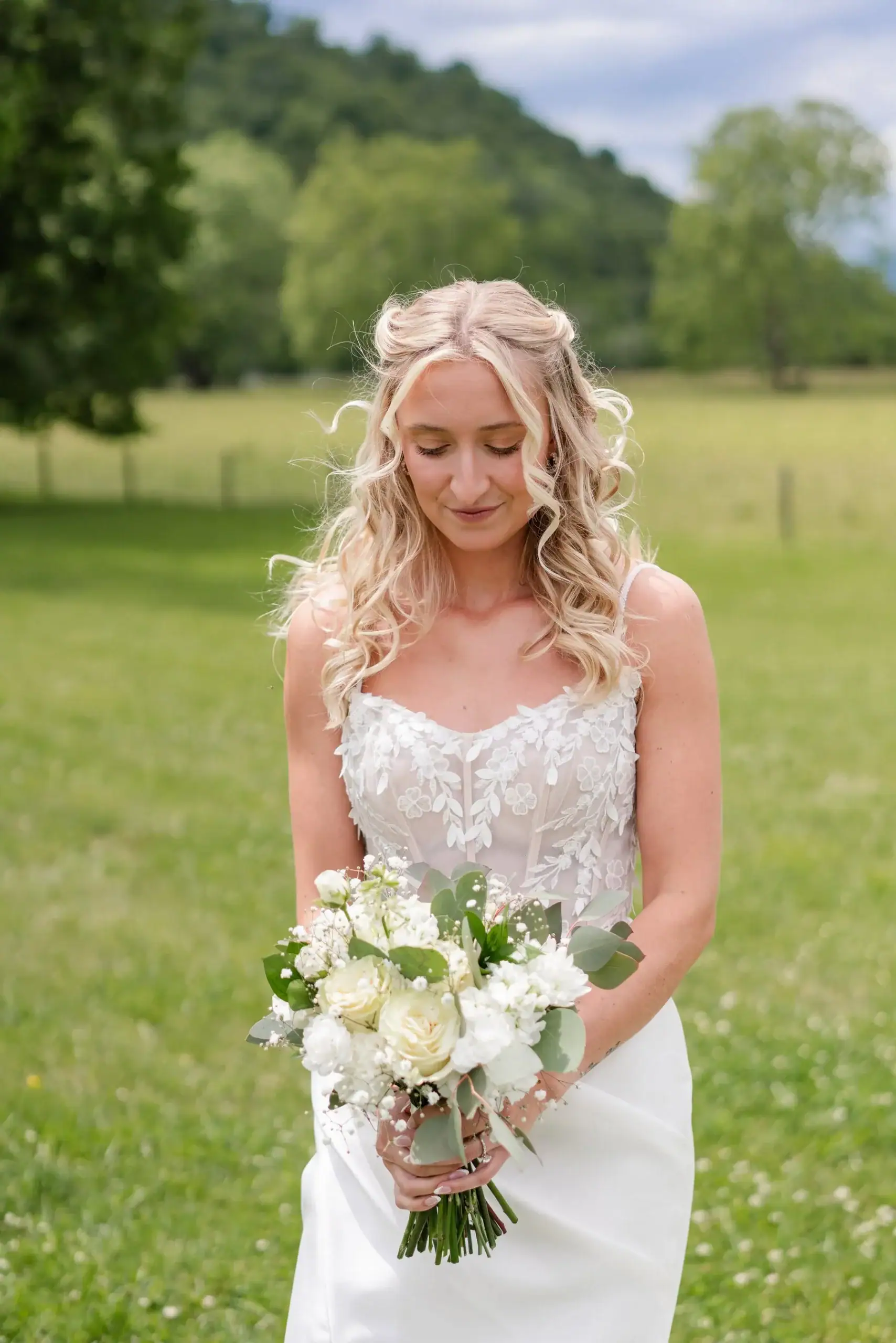 Emma and Chase celebrated their long-awaited wedding day surrounded by family, rolling hills, and the serene beauty of Big Spring Farm in Lexington, Virginia. Even though the couple had already been married for a year, the emotions felt brand new; especially when the groom, known for being quiet and composed, was overcome with tears as he saw Emma walking down the aisle! Their ceremony by the water was framed by lush ferns, classic white florals, and the willow trees that make this venue so timeless.