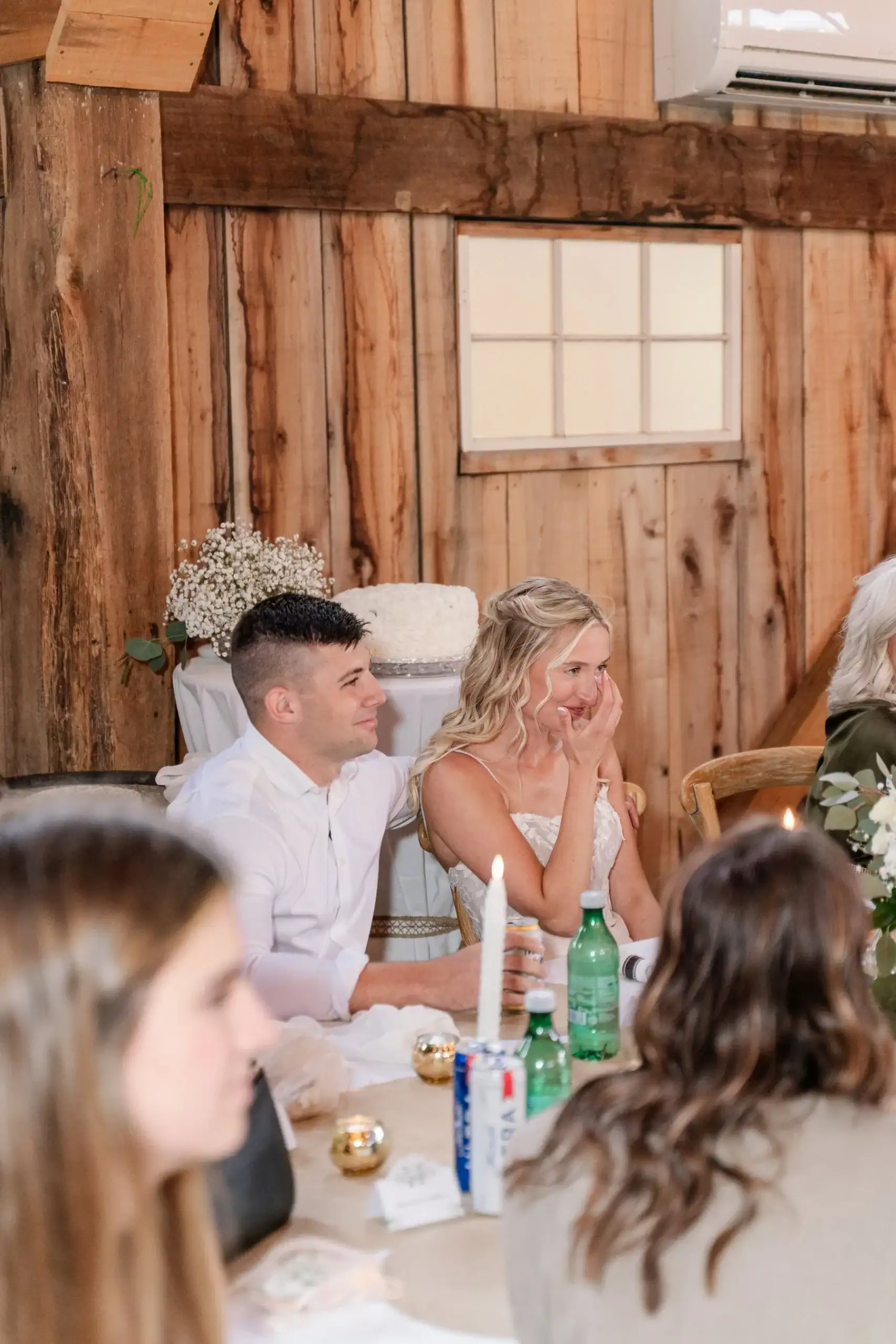 This wedding was a reflection of what mattered most to them — family, connection, and natural beauty. With subtle coastal touches like woven baskets and patterned oyster shells, a soft green-and-white palette, and heartfelt toasts from family, the day felt simple yet deeply meaningful. From tearful vows to the rainbow finale, it was a day where love, weather, and emotion all came together in the most perfect way.